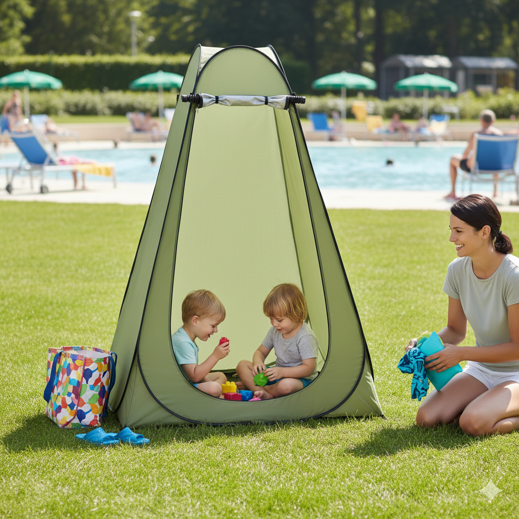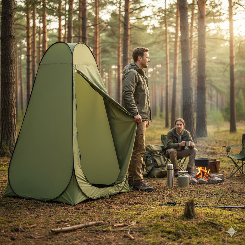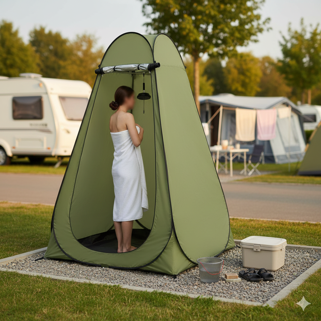 Ideal als Umkleide, Toilettenzelt oder mobile Camping-Dusche – leicht, kompakt und in wenigen Sekunden einsatzbereit. ⚡